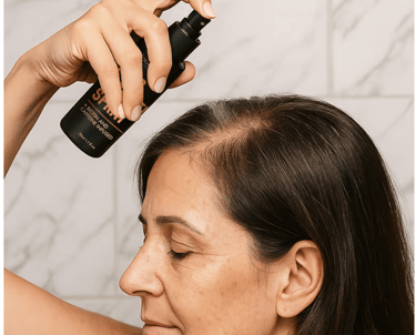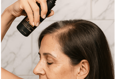 HaloGrow direkt auf die Kopfhaut sprühen (nicht nur auf die Haarsträhnen).